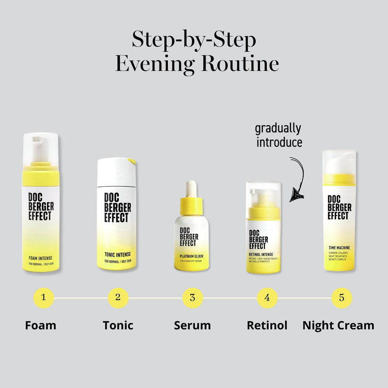 Wir empfehlen dringend, Produkte von DOC BERGER EFFECT nicht mit anderen Hautpflegelinien zu kombinieren, deren Inhaltsstoffe unklar sind oder potenziell schädliche Zusätze enthalten könnten. Solche Kombinationen können zu unerwünschten Hautreaktionen führen, da PC möglicherweise irritierende Substanzen anderer Produkte auf die Haut überträgt. Die einzigartigen Fähigkeiten von Phosphatidylcholin entfalten ihre positiven Effekte vollständig nur innerhalb eines durchdachten Produktkonzepts. Aus diesem Grund ist es ratsam, eine konsistente Hautpflegeroutine ausschließlich mit DOC BERGER EFFECT Produkten zu verfolgen, um Deiner Haut stets das Beste zu bieten.