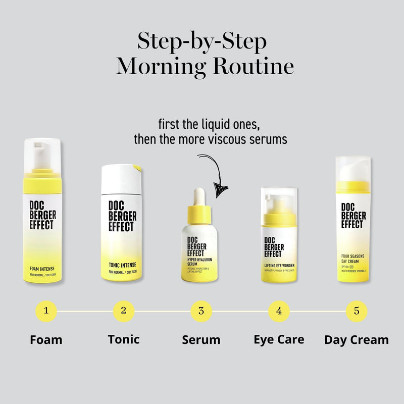 Wir sind der Meinung, dass die wichtigsten Aspekte in der Hautpflege Dein individueller Hauttyp, Deine Lebensbedingungen, Dein Alter und Deine persönlichen Wünsche an die Hautpflege sind. Unser Fokus liegt auf der Entwicklung von Produkten, die mit sorgfältig ausgewählten, hochwertigen Inhaltsstoffen angereichert sind und gezielt auf Deinen Hauttyp eingehen. Bei DOC BERGER EFFECT steht also die persönliche Hautpflege im Mittelpunkt – wir sind hier, um für jeden Einzelnen die passende Skincare-Routine zu bieten, ganz egal, wer Du bist.