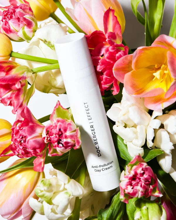 Example: The Anti-Pollution Day Cream by DOC BERGER EFFECT shields the skin from UV, blue light, and infrared radiation, formulated with a skin-identical base.