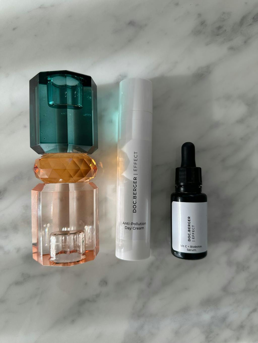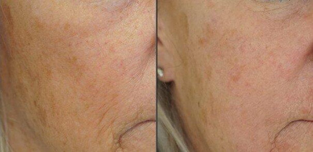 High‑concentration vitamin C has strong antioxidant activity, inhibits melanin production, and helps the skin visibly brighten existing pigment spots. The crucial factors are not only the concentration but also the molecule size and the stability of the vitamin‑C form. This transformation shows how clearly the skin tone could be evened out through consistent use of our vitamin C serum—even with stubborn discolorations. The day cream and retinol were also used alongside it.