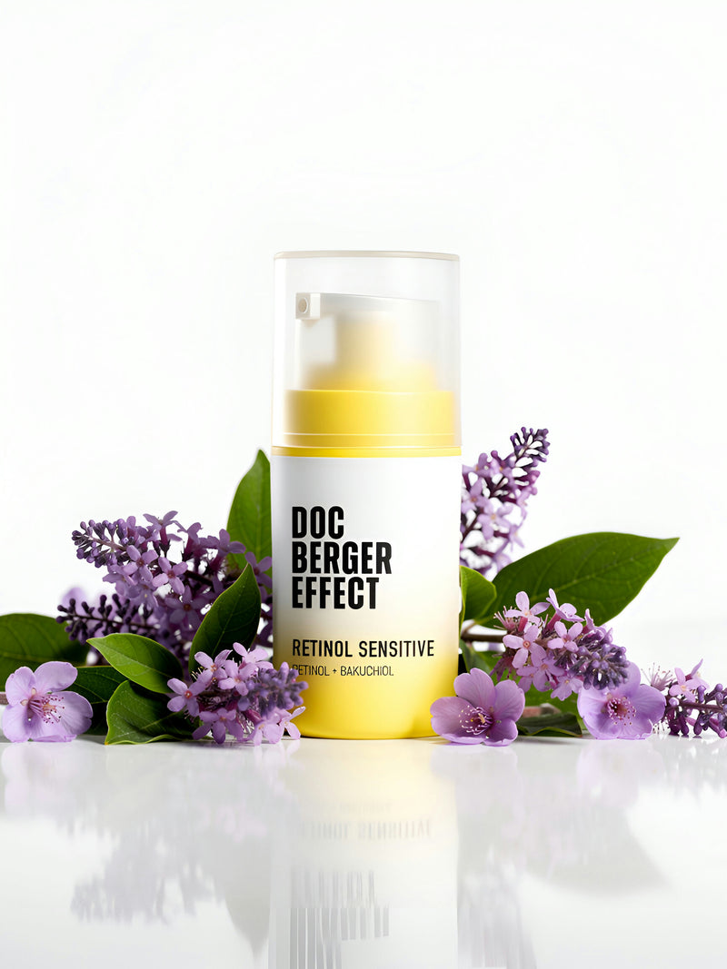 Genau dafür wurde das Retinol Sensitive entwickelt. Die Formulierung richtet sich an empfindliche, trockene oder noch nicht an Retinol gewöhnte Haut ("Retinol Anfänger") und legt den Fokus auf Verträglichkeit, Beruhigung und Repair. Das Serum kombiniert ein mildes Retinol mit Bakuchiol und Novoretin – zwei pflanzlichen Alternativen, die ähnliche Effekte unterstützen, jedoch deutlich schonender wirken.